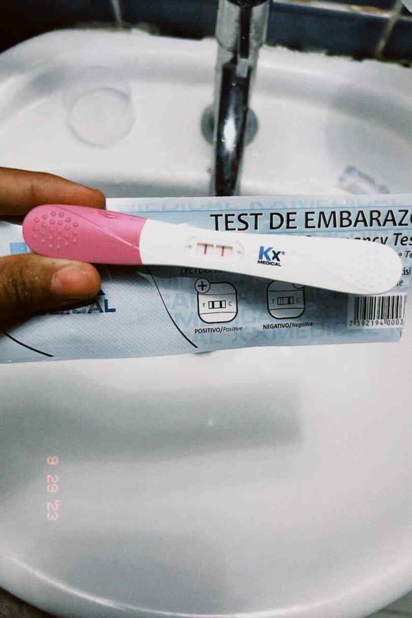 Bueno, un día dije, voy a comprar un test de embarazo, solo para descartar. Recuerdo perfectamente que lo compré el 26 de septiembre (martes) y me dije: si la menstruación no me baja, me hago el test el viernes. A todo esto, el viernes era 29 de septiembre cumplíamos 2 meses de casados (8 semanas)… Llegó el viernes 29, me levanté como usual, ese día debía ir a la oficina presencialmente, y justo con la primera orina de la mañana me hice el test. El mismo salió positivo. Por lo que yo todavía en shock e incrédula, recogí todas las evidencias de que me lo había hecho (según yo) y me metí a bañar rápido. Ese día, en lugar de irme directo a la oficina, me fui a la clínica más cercana y me practiqué una prueba de embarazo en sangre.